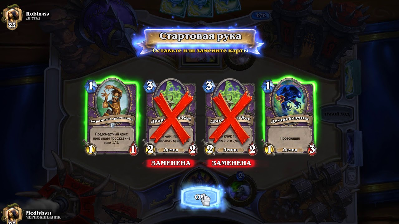 Муллиган для колоды Таунт Друида имеет следующий вид:
